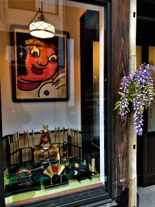 いつも季節の飾り付けが素晴らしい中山美六堂。兜と子供の絵を飾り、目を楽しませてくれている。