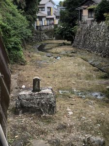 校舎が新しく変わっても川の中の小さな石碑はこの先もずっと